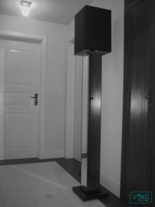 Espelho de 6mm de espessura, com aresta/chanfre a 45º, colagem UV.