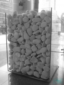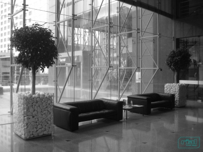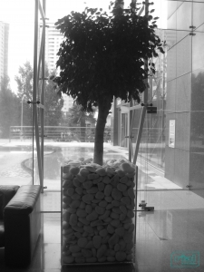 Floreiras em vidro incolor, temperado, de 12mm de espessura. Aresta/chanfre a 45º e colagens a UV.
